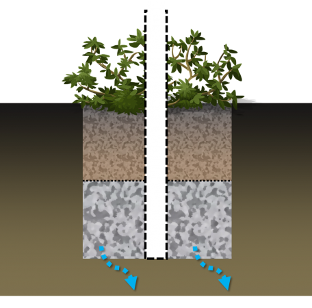 This type of bioretention facility provides the highest level of stormwater volume control. Although this design does not include an underdrain, an overflow pipe, a weir or other outlet structure must be included.