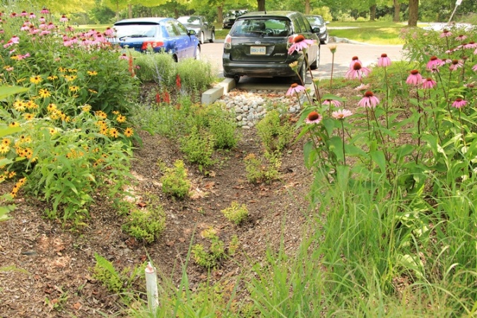 This article is about planted installations designed to capture surface runoff through an engineered soil with subterranean infrastructure.