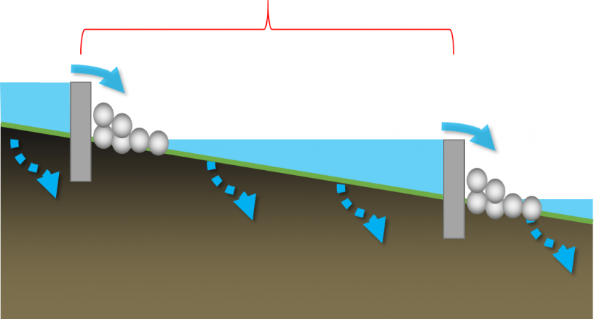 The objective of these design recommendations are to maximize the distribution of ponded water along the whole BMP. Detailed design may require iteration of the dam heights and distances along each section of a long swale.