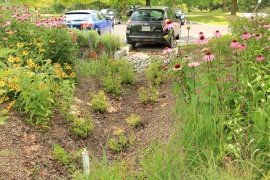 Rain GardensOften found on residential sites or on land managed by community organisations . This simple variation may be constructed by the property owner and usually excludes the storage layer. Image here