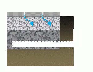 In most designs, the surface acts as pretreatment to the stone reservoir below. Periodic vacuum sweeping and preventative measures like not storing snow or other materials on the pavement are critical to prevent clogging. Another pretreatment element is a pea gravel choking layer above the coarse gravel storage reservoir.