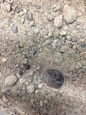 Filter media being used for an online bioretention swale (also of previous, more sandy specification)