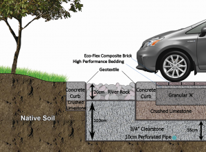 • Geotextile to maintain separation between the storage reservoir and surrounding native soil.