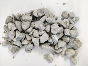Note the uniform size and angularity of this clear stone sample. Note also that the fragments all appear to have a film of fine particles adhering; this material would be improved by being washed prior to use.