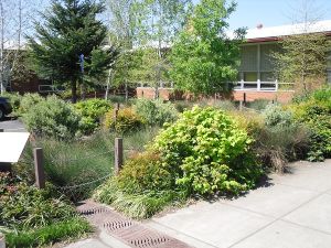 Scale and proportion simply refer to the size of the elements, objects and spaces of the landscape in relation to one another, to the LID site and to its surroundings. While there are no rules dictating how this principle is to be achieved, it is important to consider scale and proportion when designing. The relationship in size between components must b relative, or the result can be a lack of harmony in the design.[3] For example, the placement of a large tree in a stormwater planter would be out of scale for this site condition, while the planting of an individual ornamental flower species may appear insignificant in a bioretention cell. Some plant materials may require management (thinning, pruning) in order to maintain the scale and proportion of the intended design over time.