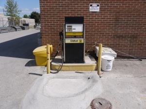 A fueling station at a Mississauga business features a catch basin and valve for each cleanups.