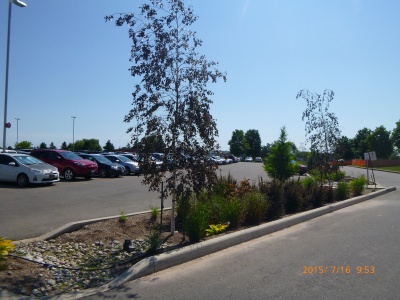 Trees can be incorporated into bioretention cells with other plant types, or otherwise into their own planting pits.